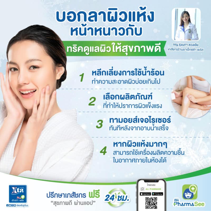 ช่วงนี้กำลังเข้าจะฤดูหนาวซึ่งจะเป็นฤดูที่มีความชื้นในอากาศต่ำลง ทำให้ผิวแห้งได้ ดังนั้นสิ่งที่สำคัญในการรักษาสุขภาพผิวให้แข็งแรงคือความชุ่มชื้น มีทริคสำหรับการปฏิบัติตน เพื่อให้ผิวคงความชุ่มชื้นและสุขภาพดีในช่วงฤดูหนาว ดังนี้