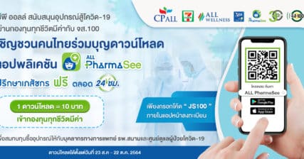 ซีพี ออลล์สนับสนุนอุปกรณ์สู้โควิด ผ่านกองทุนทุกชีวิตมีค่ากับ จส.100 พร้อมเชิญชวนคนไทยร่วมบุญดาวน์โหลดแอปพลิเคชัน ALL PharmaSee