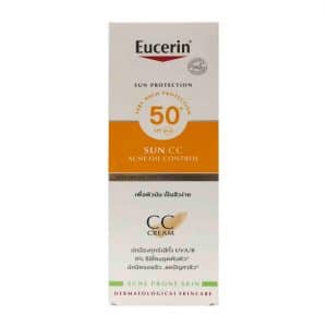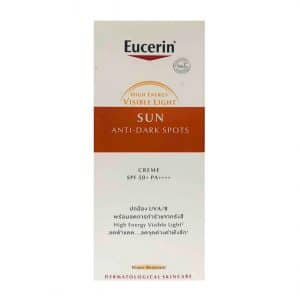 - Eucerin Sun Creme Face SPF 50+ ครีมกันแดดที่ช่วยปกป้องผิวจากรังสี UVA และรังสี UVB พร้อมลดการทำร้ายจากรังสี และช่วยลดฝ้าแดด จุดด่างดำที่ฝังลึกได้อย่างมีประสิทธิภาพ